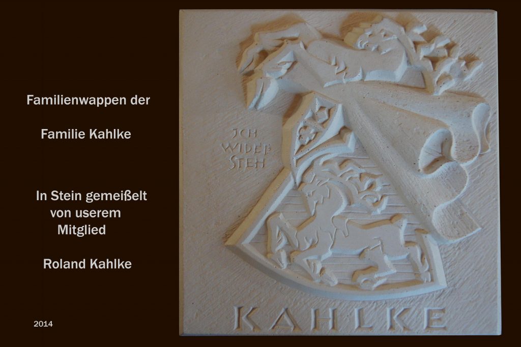 Zur abschließenden Kaffeetafel hatte Roland Kahlke eine Überraschung für den Vorstand bereit: er überreichte dem Ersten Vorsitzenden Dieter Kahlke eine wunderschöne Model-Kopie eines von ihm in Stein gemeißelten Kahlke-Wappens. Der Erste Vorsitzende bedankte sich ganz herzlich dafür. Gegen 16.00 Uhr wurde die Sitzung geschlossen.